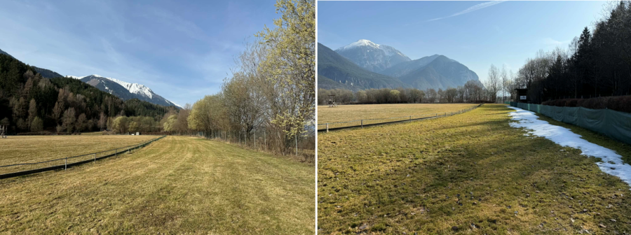 Letzte Schneereste auf der Rennbahn